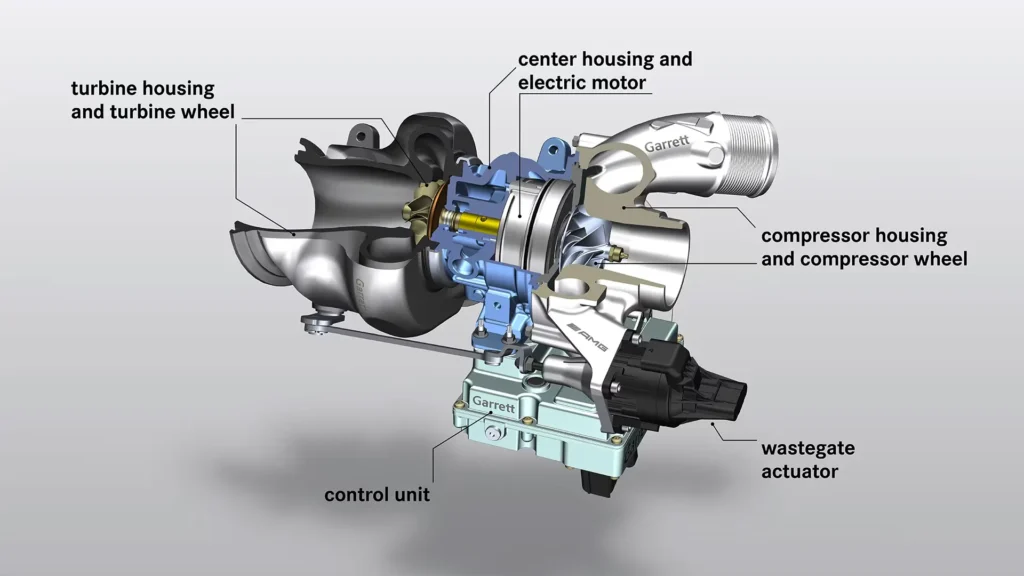 In a conventional turbocharger layout, used by Renault and Ferrari in 2014, the turbine (driven by exhaust gas) and the compressor (driven by the turbine to pressurize intake air) are housed in a single unit, typically mounted at the rear of the engine block. This proximity creates a significant thermal management problem: the turbine operates at temperatures exceeding 900°C, while the compressor requires cool, dense air to maximize combustion efficiency. Heat soak from the turbine to the compressor heats the intake charge, reducing air density and increasing the likelihood of detonation (knock).